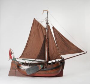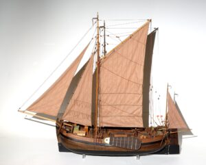 | Model Gaffelvisschuit Jonge Marinus gemaakt door modelbouwer L. Brijs, Oude Tonge. Streekmuseum Goeree-Overflakkee |