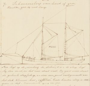 ‘Schoenersloep van hout of ijzer. Hout 82 voet, ijzer 89 voet lang.